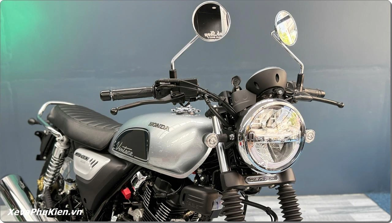Phần đầu xe nổi bật với đèn pha tròn truyền thống – biểu tượng không thể thiếu của dòng xe cổ điển. Tuy nhiên, Honda đã khéo léo tích hợp công nghệ LED bên trong, giúp tăng khả năng chiếu sáng mà vẫn giữ nguyên hình dáng xưa cũ. Cặp xi-nhan tách rời, thiết kế nhỏ gọn, hài hòa với tổng thể, mang lại cảm giác vừa cổ điển vừa hiện đại.